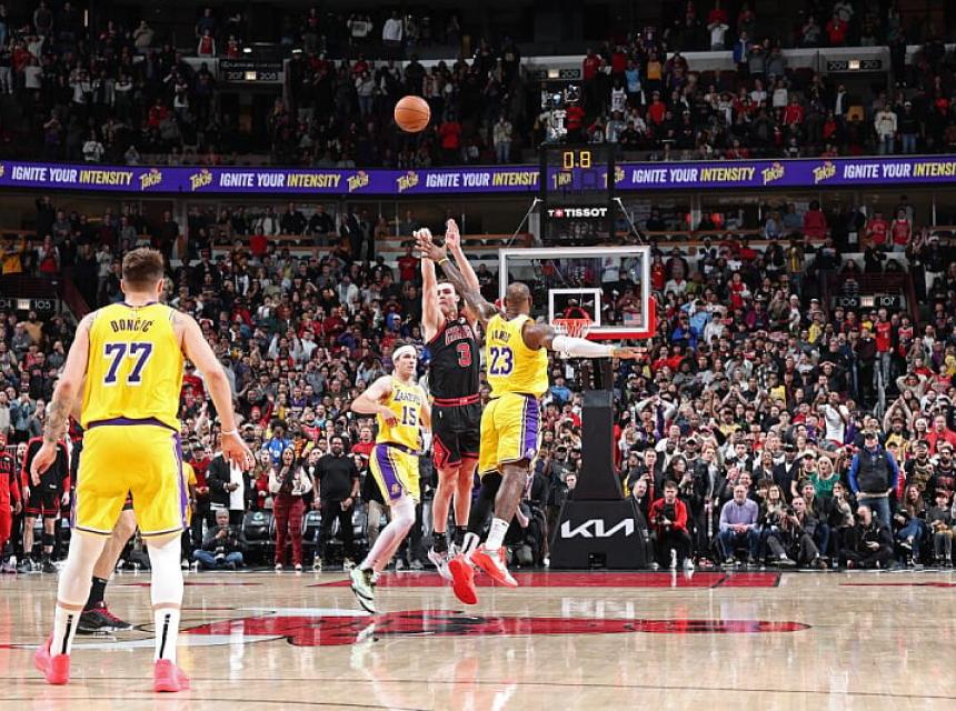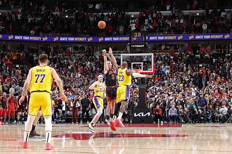 No, sa zvukom sirene je Giddey s centra pogodio trojku za pobjedu Chicaga rezultatom 119:117. Giddey je to učinio preko LeBrona koji je zakasnio da pokuša izblokirati njegov šut.