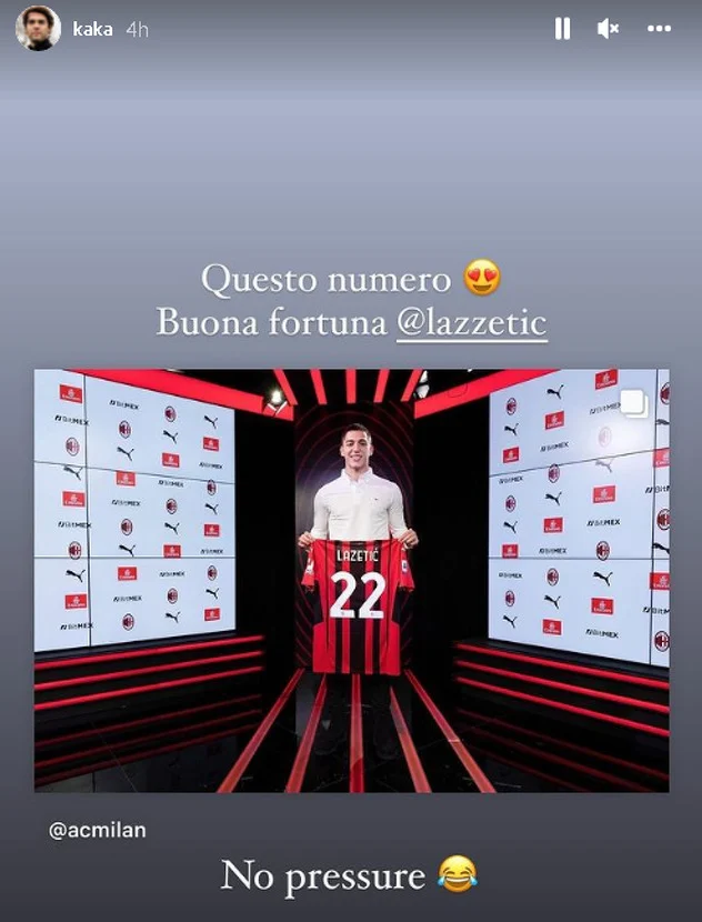 "Kakav broj! Sretno, Marko", poručio je Kaka i nakon toga dodao da broj na dresu ne znači i pritisak uz šaljivi emotikon.