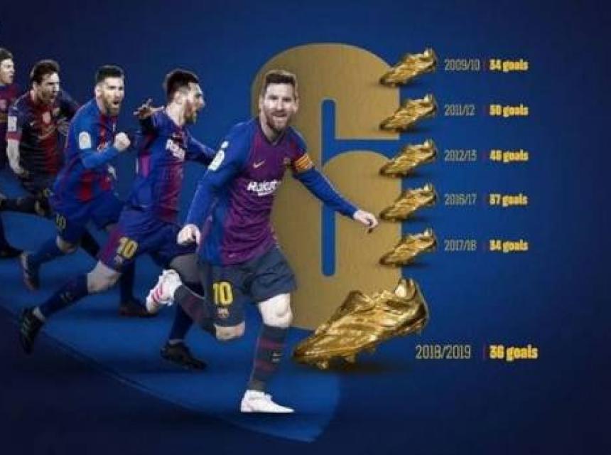 Argentinski nogometaš Lionel Messi (31) osvojio je rekordnu šestu Zlatnu kopačku kao najbolji strijelac evropskih liga nakon što je ove sezone u 34 meča La Lige postigao ukupno 36 pogodaka.