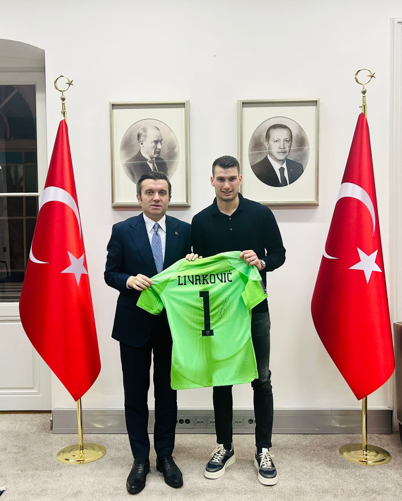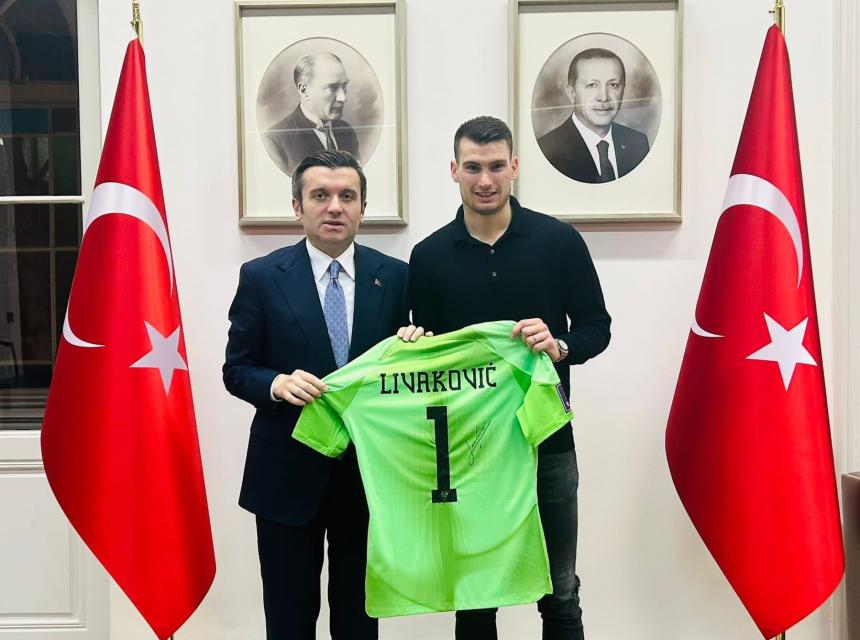 Livaković je u Ambasadi Turske u Zagrebu predao dres i rukavice koje je nosio u četvrtfinalnoj utakmici protiv Brazila na Svjetskom prvenstvu 2022. godine.