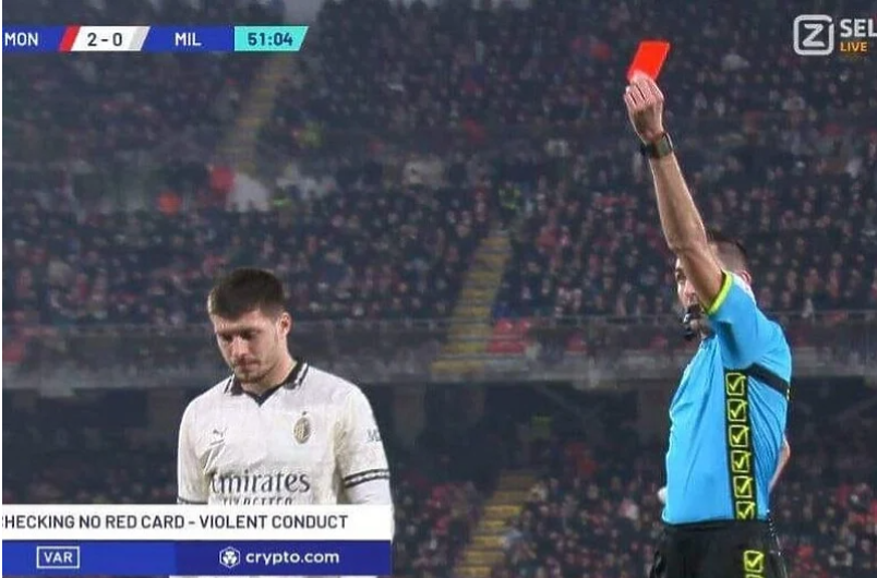 Srbijanski reprezentativac Luka Jović zaradio je direktan crveni karton u porazu Milana na gostovanju Monzi. Završeno je rezultatom 4:2 za domaći tim.