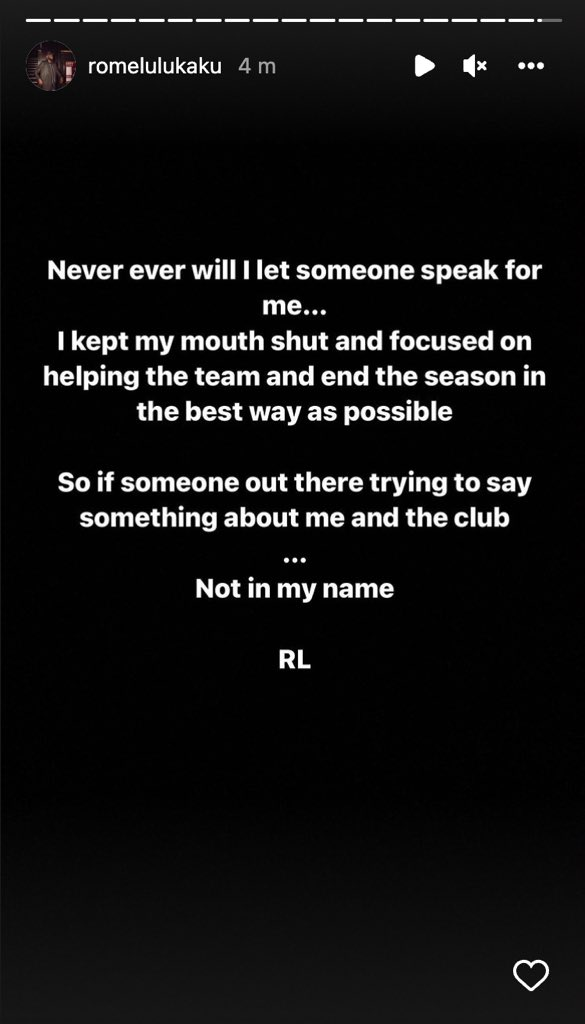 "Nikada neću dozvoliti da neko govori u moje ime", napisao je Lukaku pa nastavio: