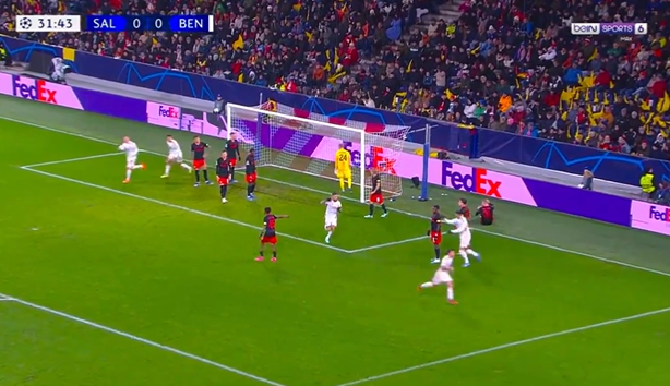 Tim iz Lisabona je u vodstvo doveo Anhel Di Marija (Angel) koji je pogodio direktno iz kornera. Igrao se 32. minut kada je Argentinac prevario domaće i iz kornera zatresao mrežu austrijskog prvaka.