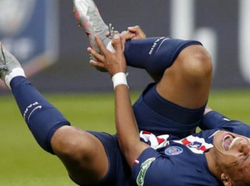 Mbappe je ozlijeđen u finalu Francuskog kupa protiv Saint Etienna, kada je nakon grubog starta Perrina iznesen s terena u nosilima.