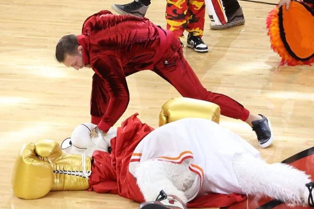 Irac je to shvatio kao izazov te je odmah nokautirao maskotu.