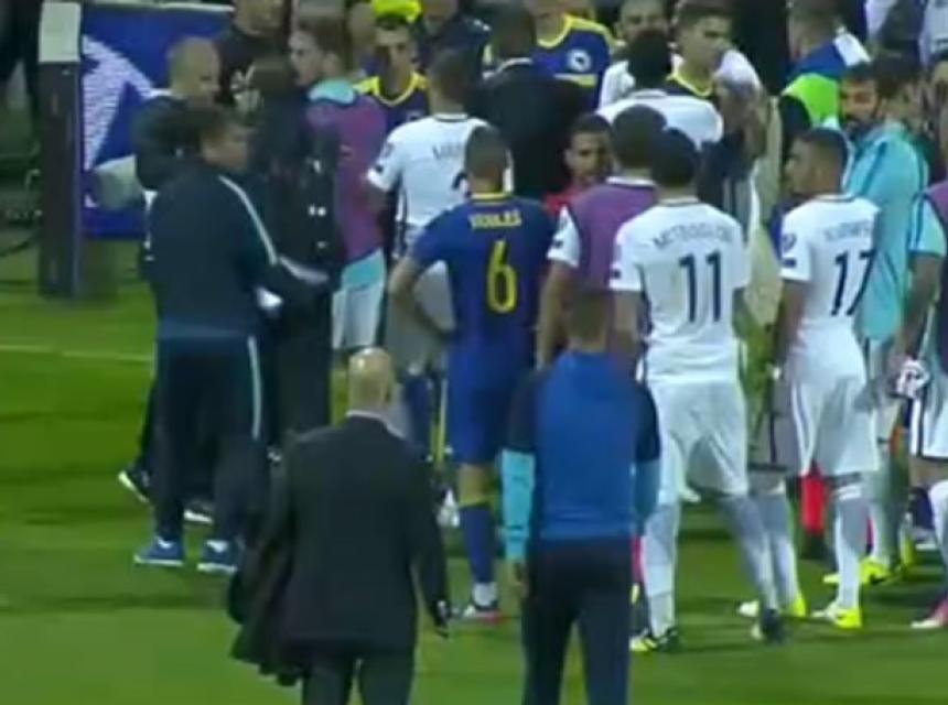 Verbalni duel između Džeke i Manolasa završio je tučom na terenu, a ubrzo su se u sukob umiješali igrači i stručni štab obje reprezentacije.