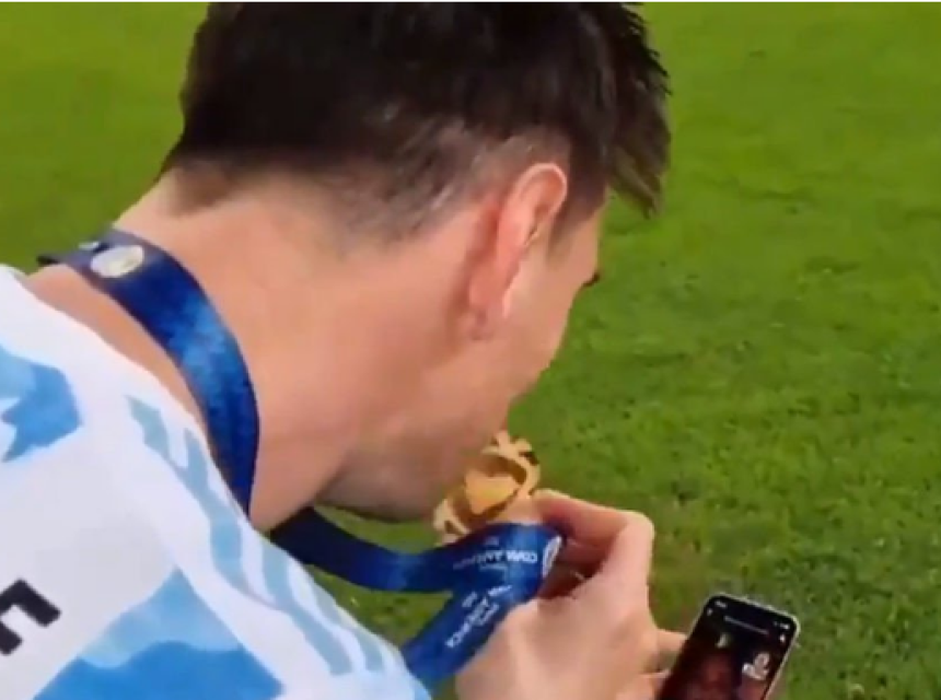 Brazilci nisu uspjeli do kraja da izjednače, pa je krenulo ludo slavlje Argentinaca. Svi su plesali, ludovali od sreće, a Messi je u jednom trenutku uzeo mobitel i video-pozivom uspostavio komunikaciju sa svojim sinom.