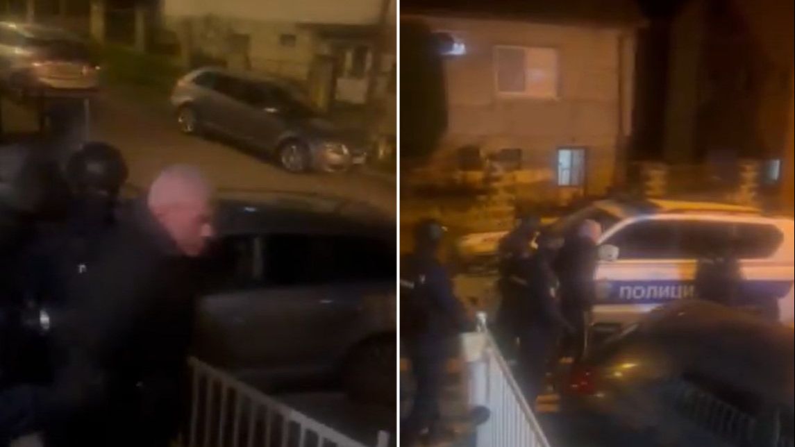 Na snimku koji je objavio pokret "Budi heroj" na društvenoj mreži X, vidi se kako nekoliko pripadnika policije izvode Bačulova iz kuće sa rukama na leđima i vode ga u policijsko vozilo, pišu Vijesti.me.