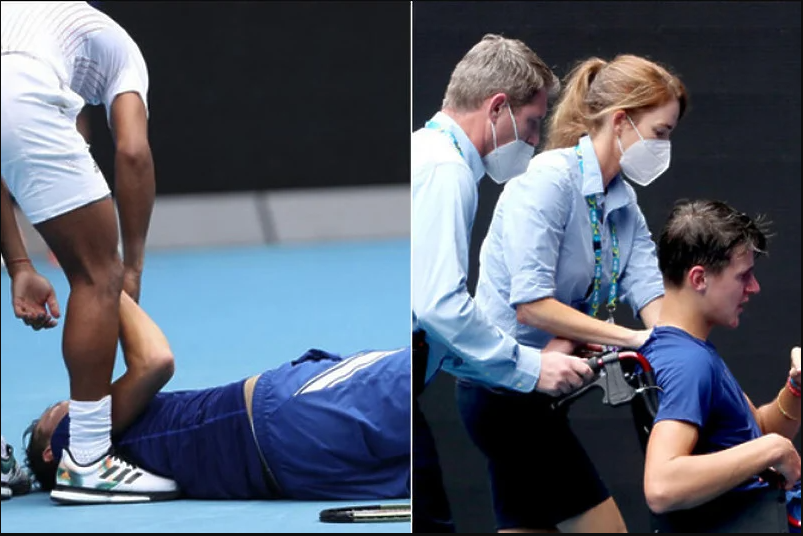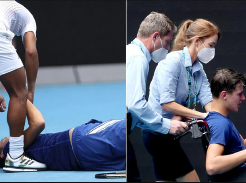Mladi Čeh u pojedinim trenucima nije imao snage ni da servira, a u posljednjem gemu meča srušio se na teren pod bolovima. Scena je zabrinula sve na tribinama i terenu.