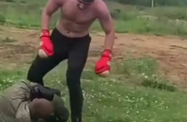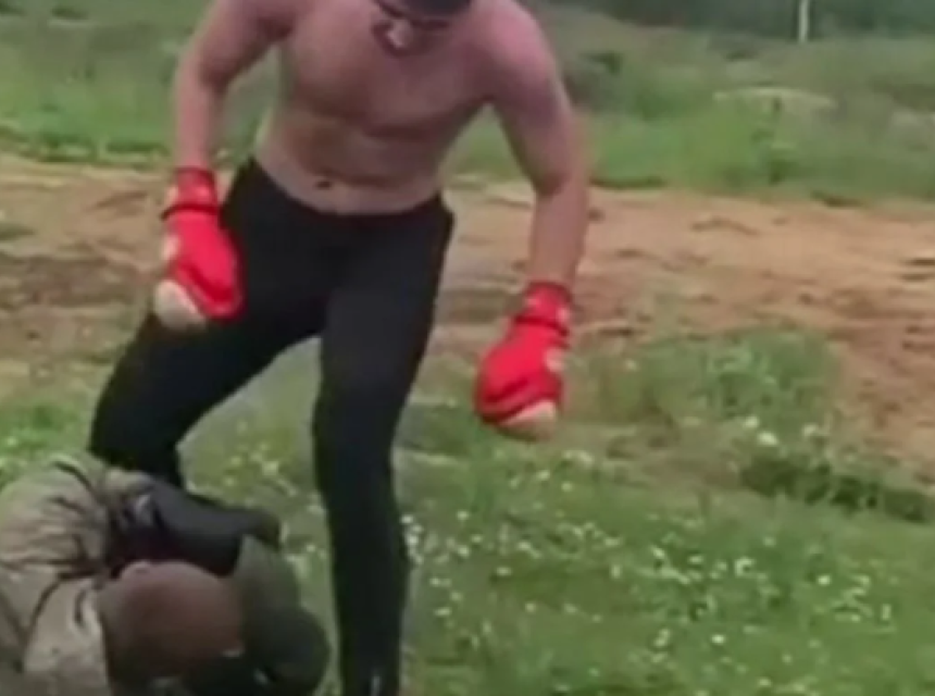 Na snimci se vidi kako regrut u vojnoj uniformi leži na zemlji, a pored njega korača sam Askhab: bez majice i u crvenim bokserskim rukavicama. Potom Dagestanac grubo viče vojniku "Ustani", nakon čega tip pokriva lice rukama, a ovaj mu zadaje snažan udarac nogom u glavu - očito, ne prvi. Scena se nastavlja još nekoliko sekundi. Magomedov se odmiče od vojnika, kao da se priprema za bijeg, i počinje odbrojavanje, nakon čega se video prekida.
