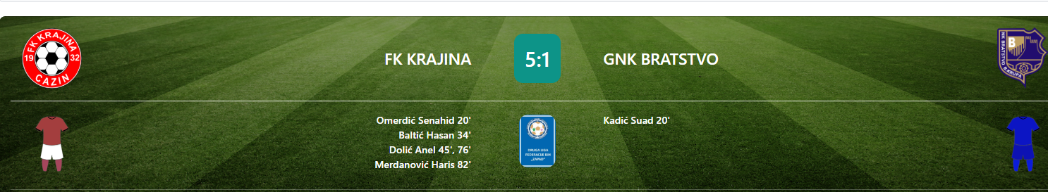 Fudbaleri FK Krajine priredili su pravi spektakl svojim navijačima u Cazinu i upisali ubjedljivu pobjedu protiv ekipe GNK Bratstvo rezultatom 5:1.