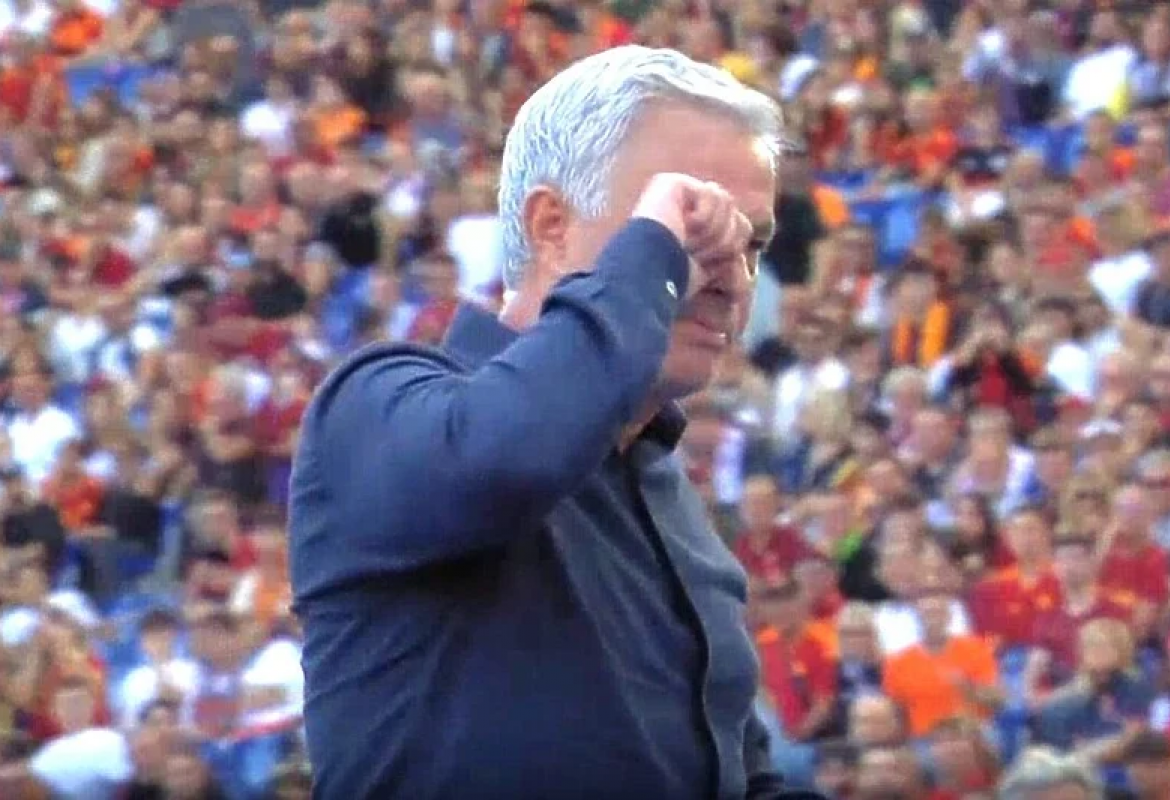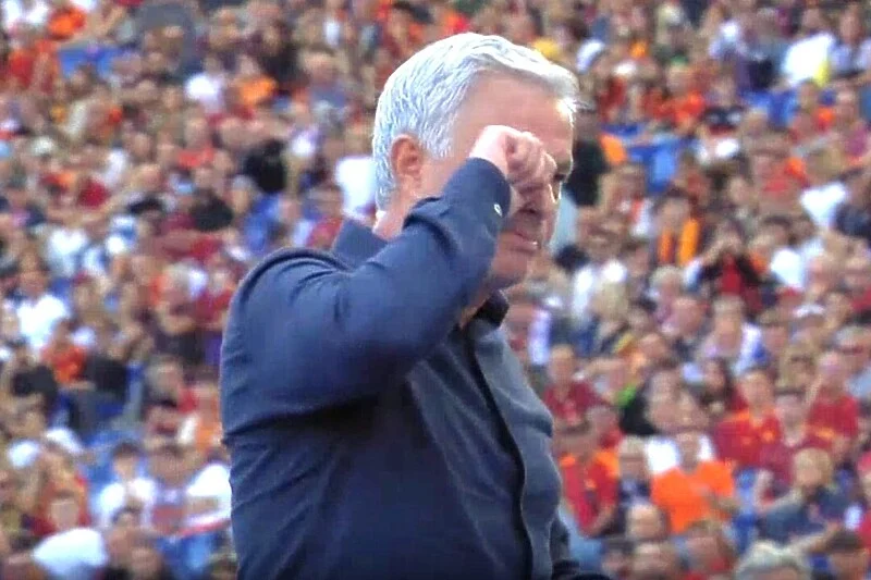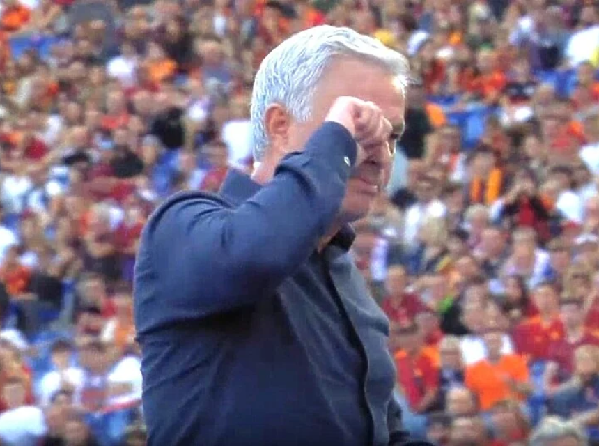 Ovaj pogodak je bacio Mourinha na koljena u slavlju, ali je trener Rome dobio i crveni karton u 11. minuti sudijske nadoknade.