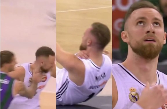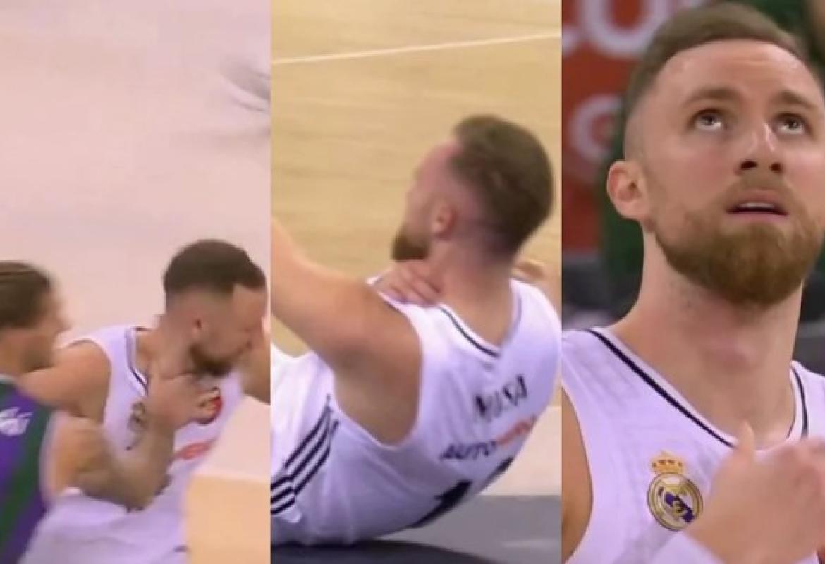 Naime, košarkaš Unicaje Dylan Osetkowski ga je prilikom borbe za loptu udario u grkljan nakon čega je Musa pao na pod, a sudije nisu reagovale pa je Real nastavio s napadom.