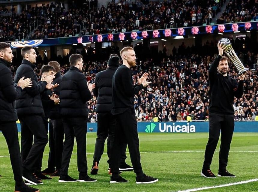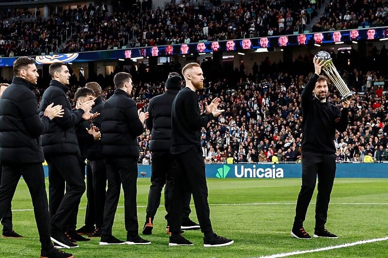 No, to ga nije spriječilo da samo nekoliko sati kasnije isprati i pohod nogometaša ka tituli prvaka. Na Instagramu je objavio fotografiju dok s tribina prati duel, a onda su na poluvremenu košarkaši Reala prohodali terenom i pozirali s trofejem Kupa kralja, na čemu su im čestitali i kolege iz nogometne sekcije.