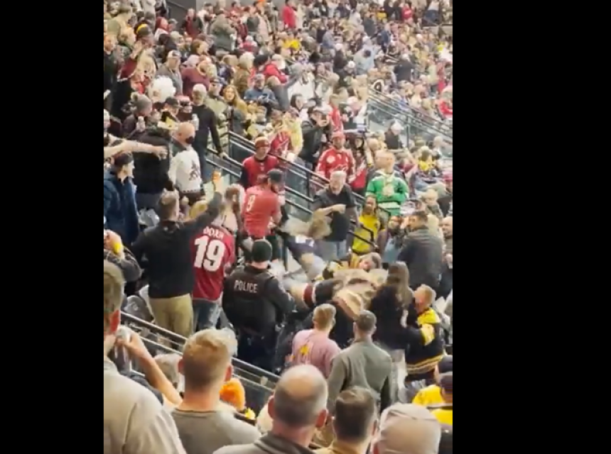 Tokom NHL susreta između Arizona Kojotsa i Boston Bruinsa, došlo je do velike tuče između navijača, prenosi Nova.rs.