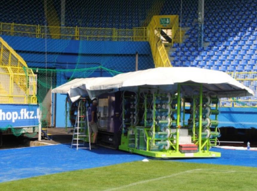 Podsjećamo, prema ranije objavljenom planu da glavni teren stadiona Grbavica bude u rangu najmodernijih na svijetu, travnjak će u narednih osam dana biti pojačan hibridnom travom. To u suštini znači da će se na tom dodatno poboljšanom, izuzetno otpornom travnjaku, čije je vrijeme oporavka veoma kratko, moći trenirati i do četiri puta sedmično i igrati utakmice.