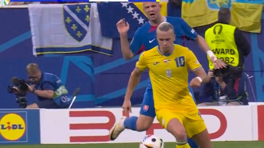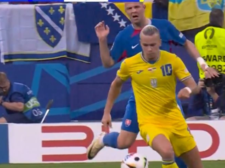 Fudbaleri Slovačke vode protiv Ukrajine nakon prvog poluvremena utakmice 2. kola grupne faze Evropskog prvenstva (1:0).