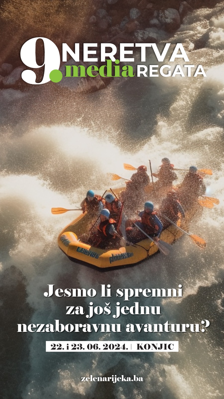 Udruženje građana “Zelena rijeka” iz Konjica, uz podršku Federalnog ministarstva okoliša i turizma, te Ministarstva prometa i komunikacija BiH, organizira devetu Neretva MEDIA Regatu, koja će se održati u Konjicu 22. i 23. juna 2024. godine. Cilj održavanja Neretva MEDIA Regate jeste očuvanje prirodnih ljepota i promocija grada Konjica kao destinacije, te skretanje pažnje na važnost zaštite životne sredine.