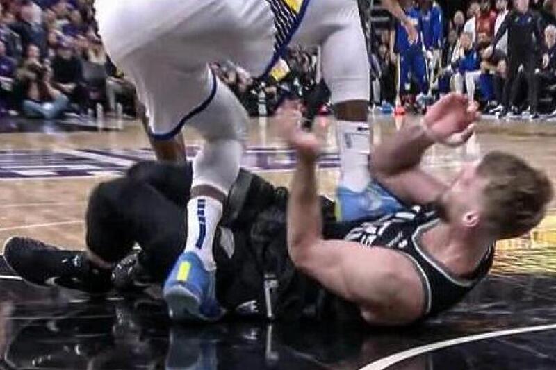 Centar Sacramenta Domantas Sabonis je pao na parket, a potom je u pokušaju da spriječi brzu kontru uhvatio Greena za nogu. Green to baš nije najbolje primio, te je iz sve snage nogom u stomak udario litvanskog košarkaša.