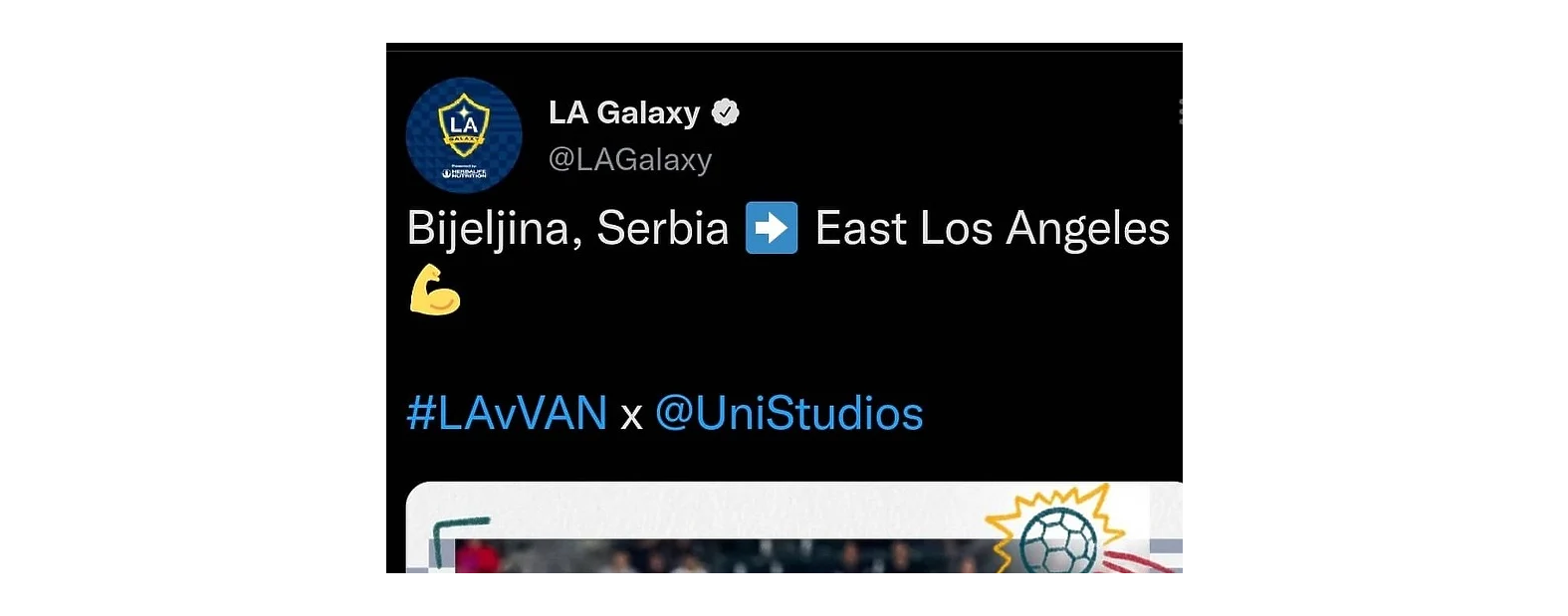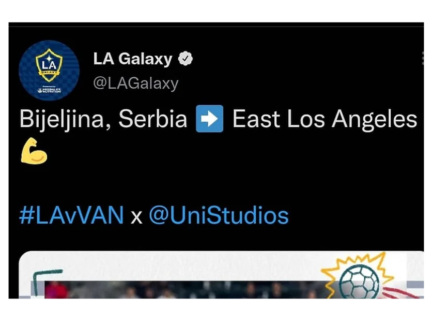 Nogometaši Los Angeles Galaxyja su sinoć savladali Vancouver rezultatom 5:2, a osoba zadužena za društvene mreže američkog kluba je jednom objavom na Twitteru razbjesnila brojne Bosance i Hercegovce.