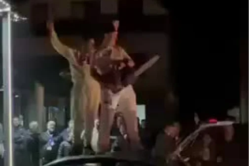 Na snimku koji kruži društvenim mrežama mogu se vidjeti dva muškarca dok stoje na automobilu nasred ulice, a jedan od njih u rukama ima upaljenu motornu pilu.