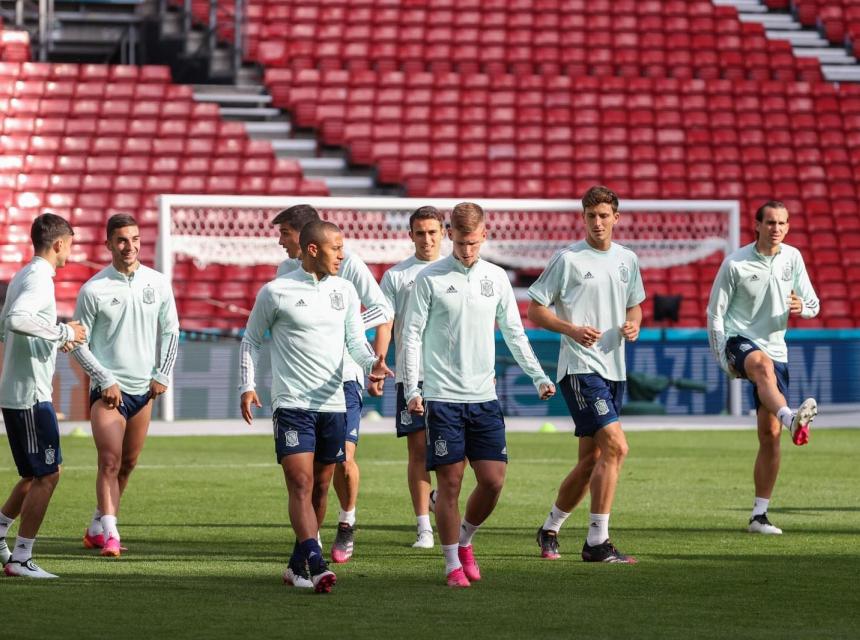 ŠPANIJA: Simon, Aspilikueta ( Azpilicueta), Garsija (Garcia), Laporte, Alba - Koke, Buskets (Busquets), Pedri - Sarabia, Tres ( Torres) - Morata.