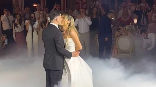 S osmijehom na licu odradili su prvi ples za deset, a mladenka je blistala u dugoj, bijeloj vjenčanici bez rukava.