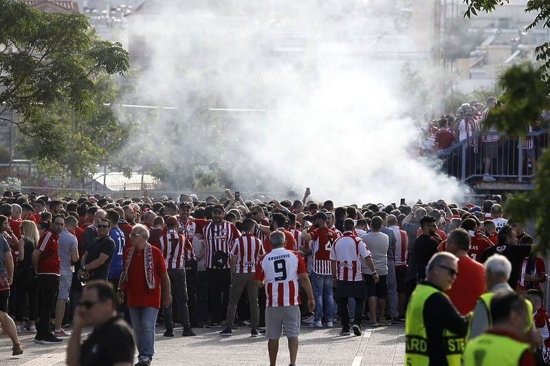 Atinska policija je uoči finala Konferencijske lige između Olympiacosa i Fiorentine uhapsila navijača AEK-a koji je nožem krenuo na navijače pirejskog kluba.