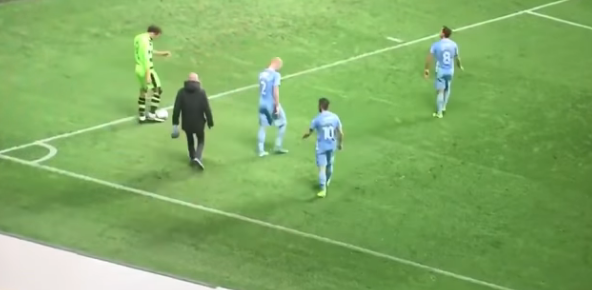 Naime, navijač domaće ekipe nezadovoljan zalaganjem igrača odlučio je da malo poprazgovara s njima na terenu i to za vrijeme utakmice.
