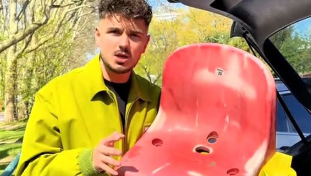 Glavni rekvizit bila je crvena plastična stolica za koju navijač tvrdi da ju je ponio sa stadiona Bilino polje u Zenici nakon utakmice BiH i Italije. Pored stolice, pripremili su zastavu BiH, dres reprezentacije s Demirovićevim imenom, čips, pa čak i njegovo omiljeno energetsko piće.