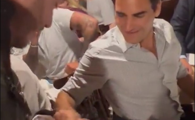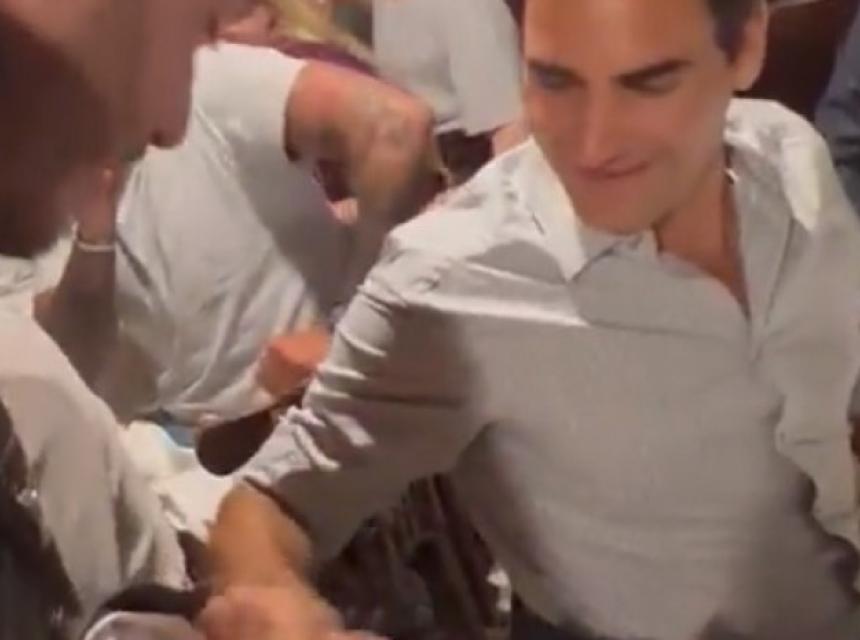 Gledao je Federer i nije mogao da vjeruje. Čak je rukom prešao preko tetovaže da se uvjeri da je prava. Potom je ustao i izgrlio ovog momka, dok su svi u kafani aplaudirali.