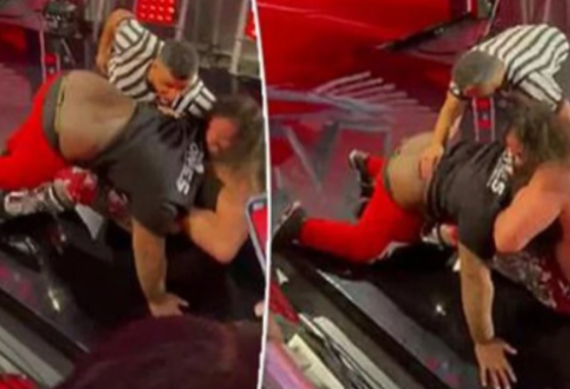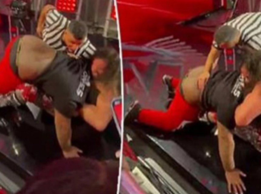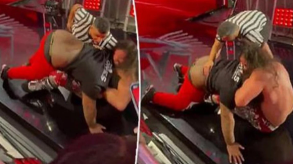 Naime, kečer Seth Rollins je napustio ring i krenuo je da izlazi sa scene, a onda je odjednom uletio jedan od najvijača koji se zabio direktno u Rollinsa i oborio ga je na zemlju.