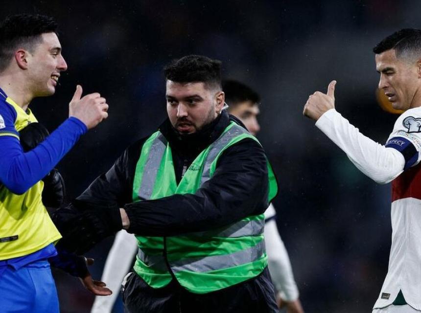 Momak u dresu Al Nasra utrčao je na teren i prišao Kristijanu Ronaldu. U momentu kada se približio Portugalcu obezbjeđenje je uspjelo da ga zaustavi, pa se okrenuo ka svom idolu i uz osmijeh mu pokazao palac okrenut ka gore.
