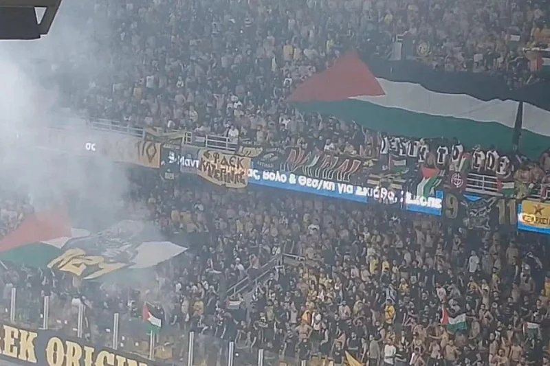 Inače, danas je grčka policija uhapsila jednog navijača AEK-a zbog nošenja palestinske zastave, no zastave Palestine su ipak završile na OPAP Areni.