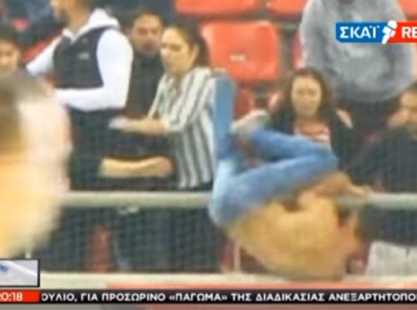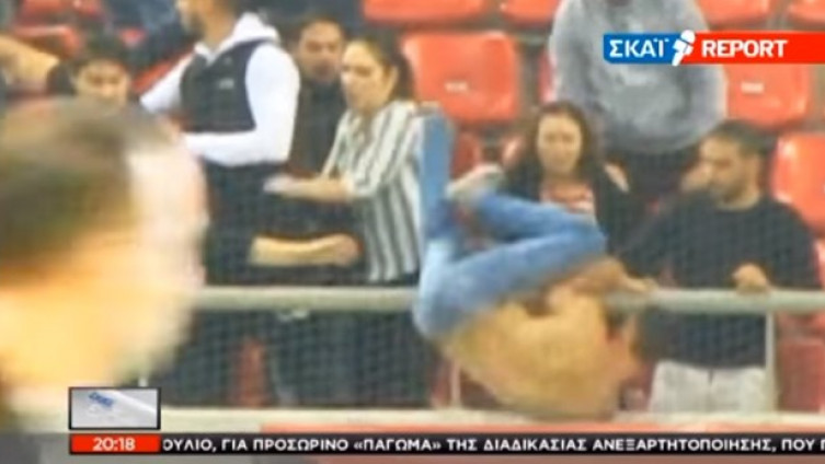 Jedan navijač PAO-a u zelenom dresu zalutao je na tribinu gdje su bili smješteni navijači kluba iz Pireja, a ovi kad su ga ugledali, počeli su ga brutalno mlatiti i skidati mu dres.