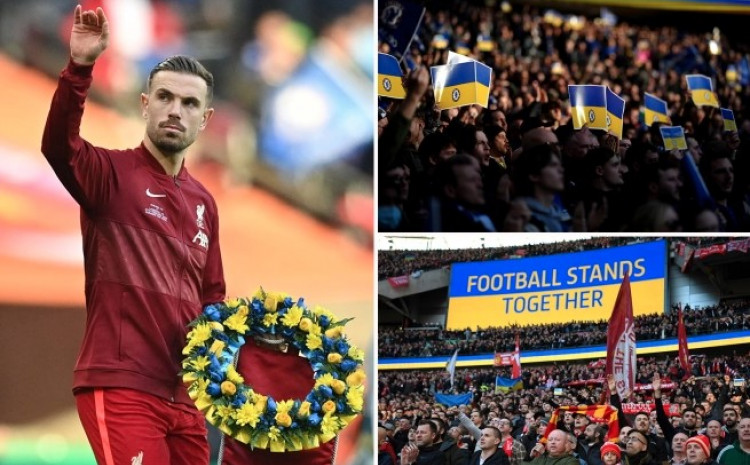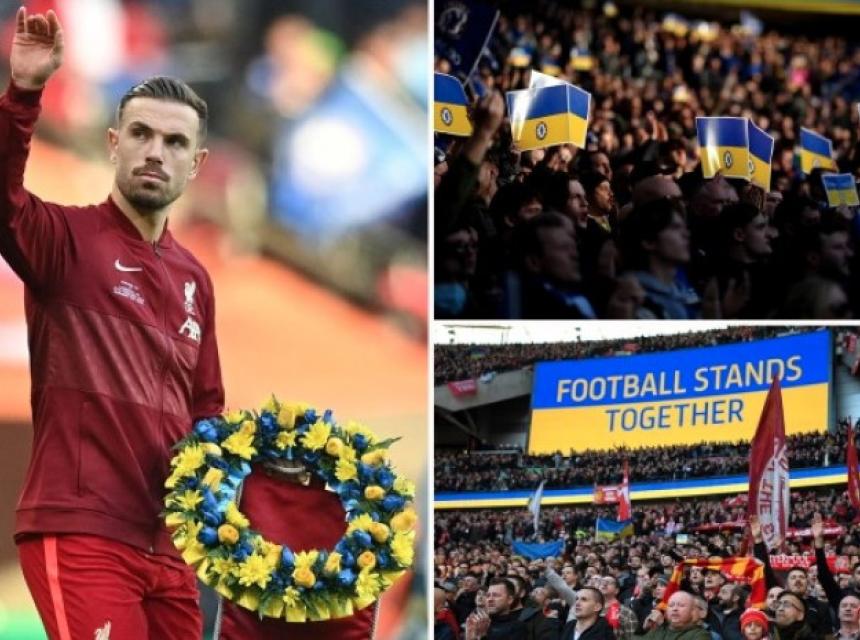 Naime, navijači oba tima na stadiona, igrači i svi ostali šalju poruke podrške Ukrajini i njenom narodu, mnoštvo ukrajinskih zastavica pojavilo se na tribinama Vemblija, dok su igrači Đordan henderson (Jordan) i Cezar Aspilikueta (Cesar Azpilicueta) iznijeli sžute i plave vijence na teren, kao simbol Ukrajine.