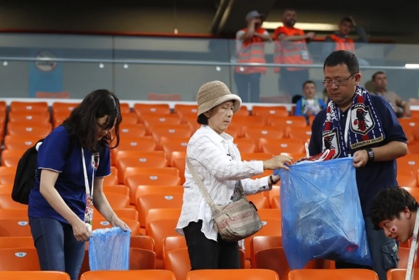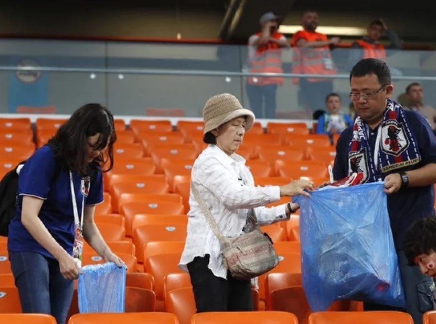 Navijači Japana i pored šokantnog poraza njihove reprezentacije od Belgije ostali su na tribinama stadiona Rostov Arena gdje su opet pokupili smeće koje je ostalo iza njih.