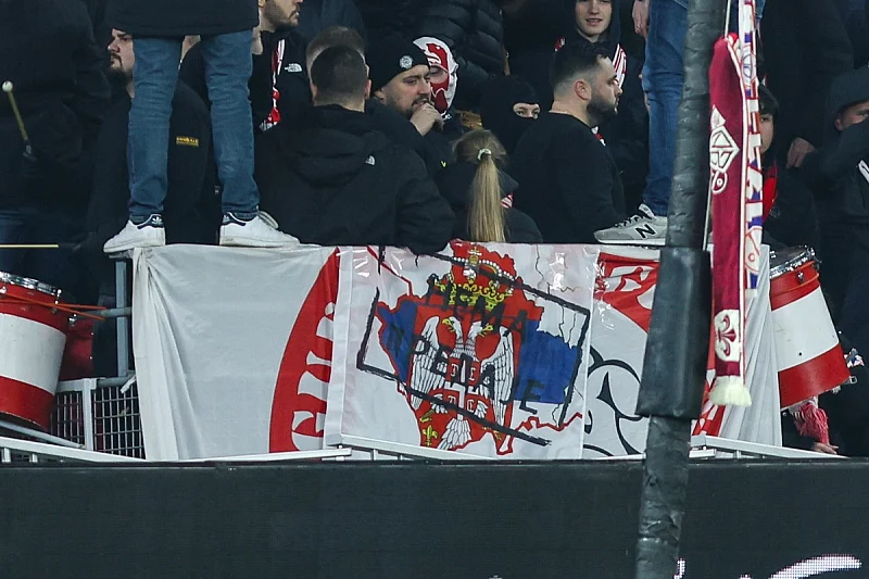 Iako stadion nije bio pun, najodaniji simpatizeri Lillea razvili su zastavu na kojoj je Kosovo prikazano kao dio Srbije uz transparent s porukom "Nema predaje".