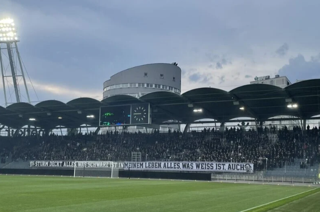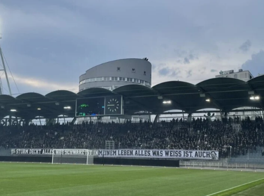 "Sturm pokriva sve što je crno u mom životu, ali i što je bijelo", piše na paroli koja se okačena na tribini ispred najvjernijih navijača Sturma.