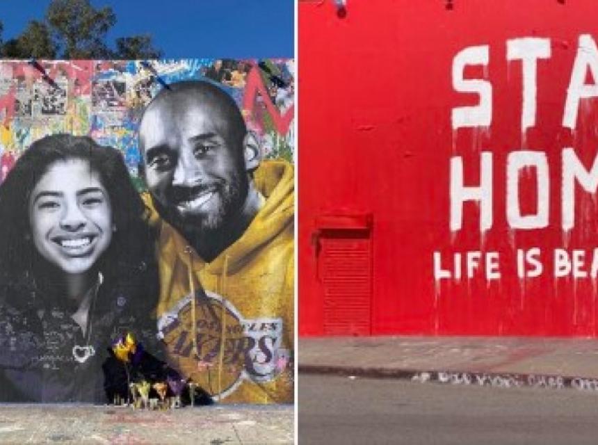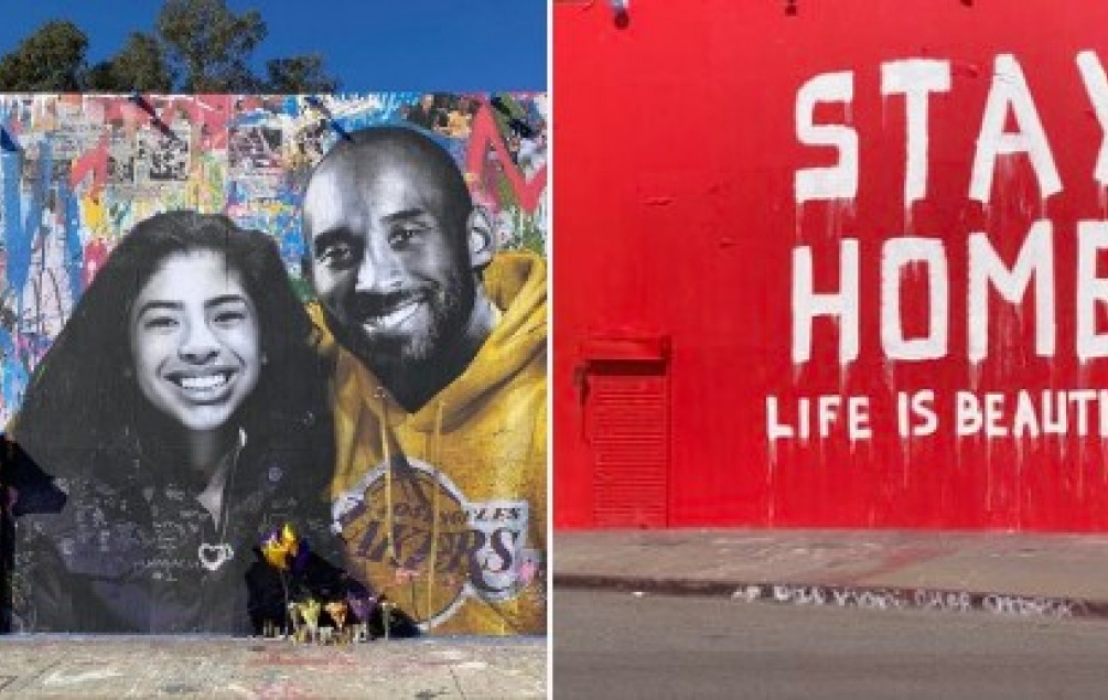 Jedan od murala posvećen tragično preminulom Kobiju Brajantu (Kobe Bryant) i njegovoj ćerki Điani (Gianna), prekrečen je kako bi se apeliralo na opasnost od koronavirusa. Mural je sada prekrečen u crvenu boju, a na njemu piše "Ostani kod kuće, život je lijep".