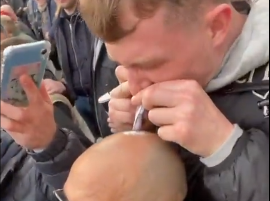 Na snimku koji se pojavio prije nekoliko dana jedan navijač stavlja bijeli prah na glavu svog prijatelja a drugi ušmrkuje taj prah što je grupi oko njih bilo prilično zabavno.