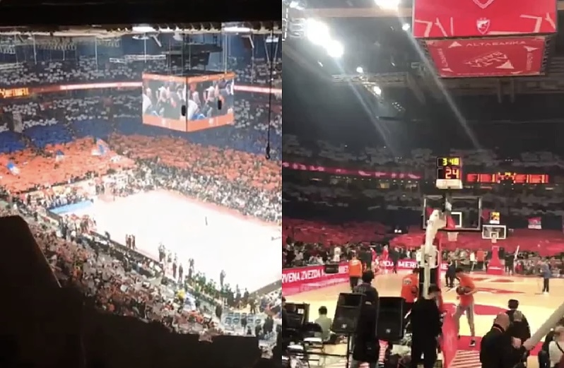 Gosti iz Litvanije još od prije početka utakmice trpe provokacije navijača Zvezde, koji su s tim ciljem priredili i koreografiju preko svih tribina.
