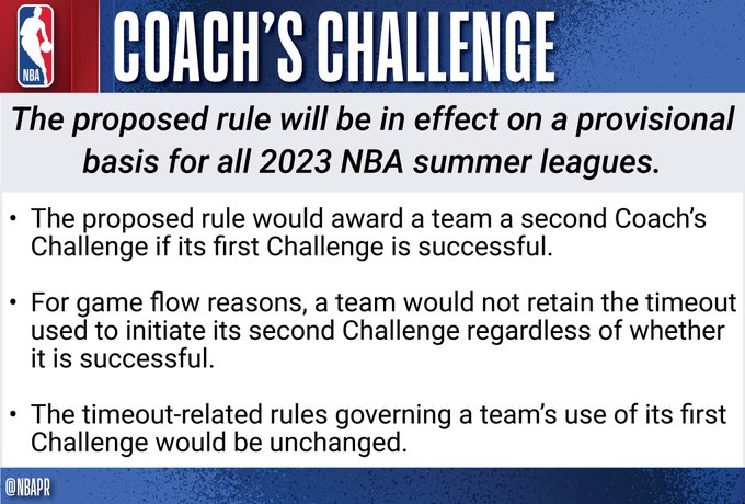 Što se čelendža tiče tu bi promjena bila da tim koji je uspješno iskoristio svoj čelendž, dobija još jedan. Također, NBA razmatra promjenu i nekih pravila koja imaju veze sa tajm-autima.