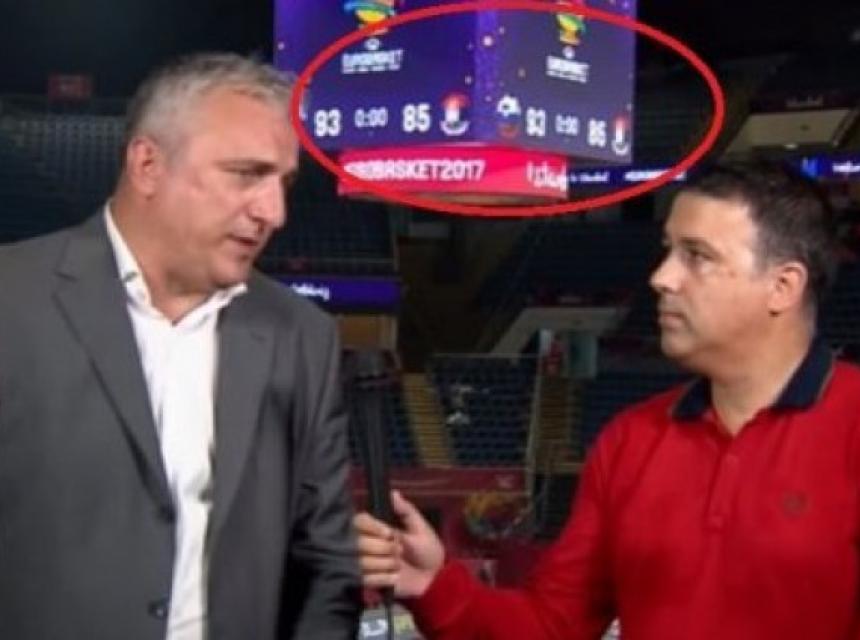 Naime, u pozadini je na semaforu stajao rezultat kojim je i završen meč - 93:85 u korist Slovenije.