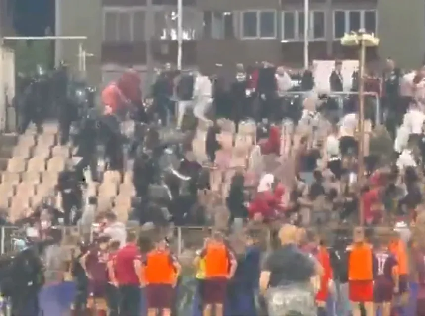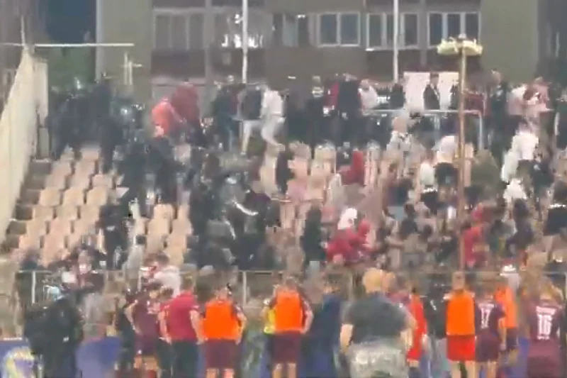 Vrlo brzo je potom reagovala policija te istjerala sve navijače sa sjeverne tribine.