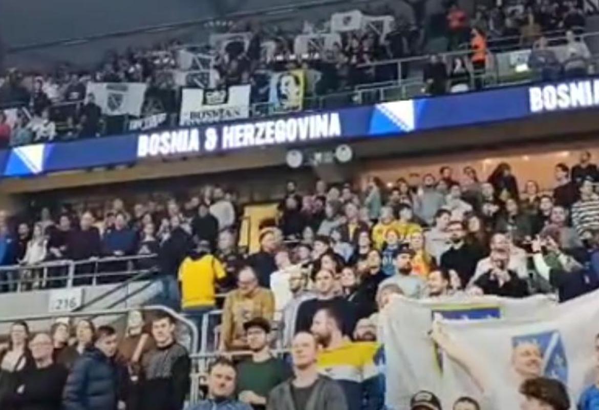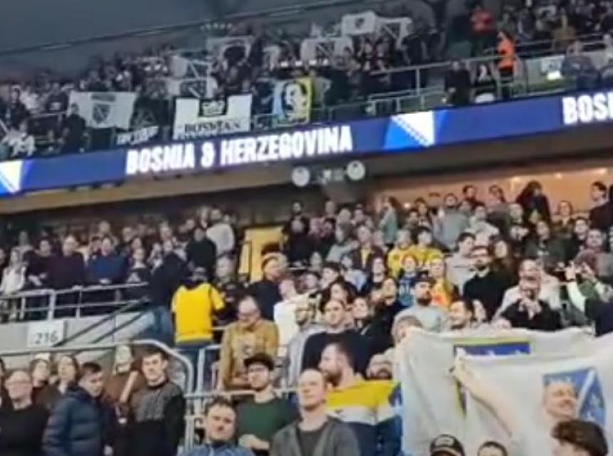 Naša reprezentacija ima veliku podršku navijača i u ovoj utakmici, bez obzira što je radni dan, a oni su srčano otpjevali himnu "Jedna si jedina" prije utakmice.