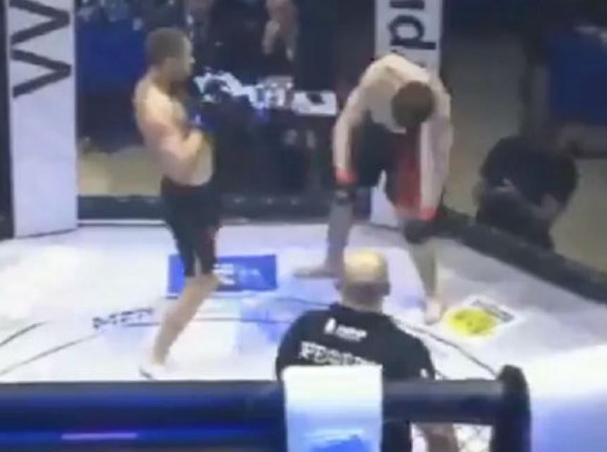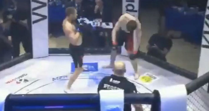 Ruski borac Vjačeslav Ptitcin je na Modern Fighting Pankration takmičenju nokautirao sunarodnjaka Vjačeslava Raslovca na do sada neviđen način.