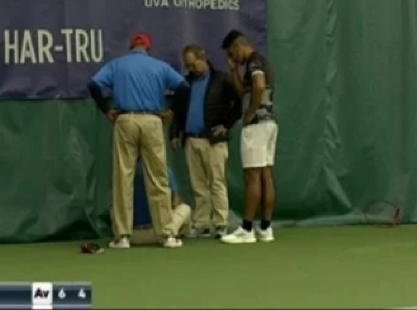 Slično nešto je napravio David Nalbandian u finalu Queen's Cluba 2012. u meču protiv Marina Čilića. Argentinac je unatoč vodstvu nogom udario linijskog suca nakon čega je diskvalificiran, a Marin Čilić je postao pobjednik.Zbog zakonskih restrikcija i TV prava, portali ne smiju objavljivati videomaterijale, ali snimku možete pogledati OVDJE.