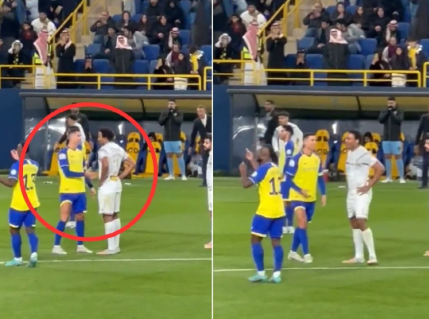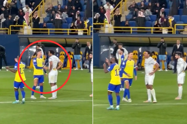 Očigledno nezadovoljan nečim što se desilo na terenu, 33-godišnji napadač je od Ronalda samo okrenuo glavu i to je poprilično iznenadilo Portugalca.