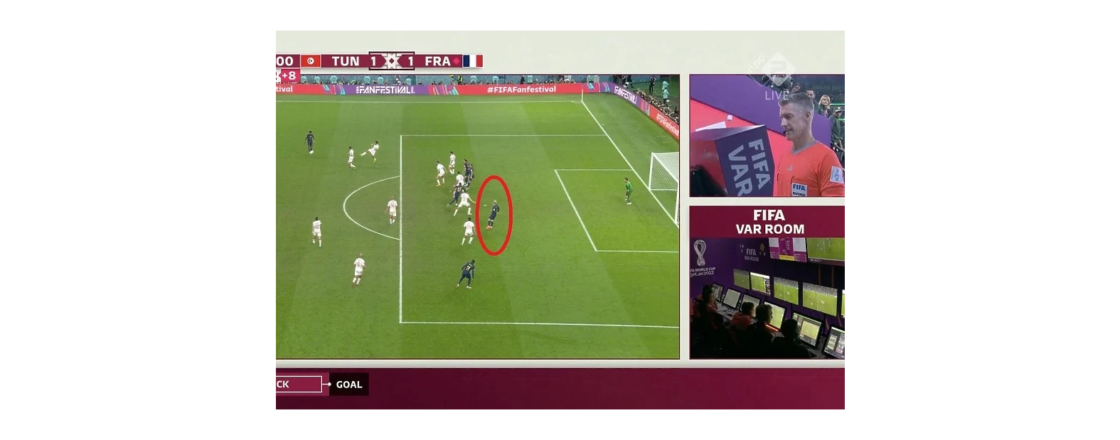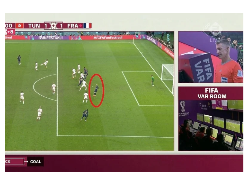 Tunis je imao vodstvo od 1:0 zahvaljujući golu koji je postigao Khazri u 58. minuti, a kada se činilo da će se Tunižani odbraniti i doći do pobjede, Francuska u osmoj minuti sudijske nadoknade postiže gol i dolazi do poravnanja, činilo se i konačnih 1:1.Ipak, tri minute nakon toga i nakon što su svi francuski igrači uveliko proslavili pogodak kojim su "izbjegli poraz", VAR je reagovao i pozvao glavnog sudiju Matthewa Congera iz Novog Zelanada da još jednom pogleda situaciju.